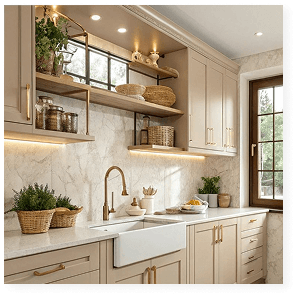 استفاده از متریالهای باکیفیت مانند MDF و هایگلاس، طراحی مینیمال، رنگهای خنثی و دستگیرههای مخفی یا فشاری. مناسب برای خانههای آپارتمانی و آشپزخانههای کوچک به دلیل طراحی فشرده و کاربردی.